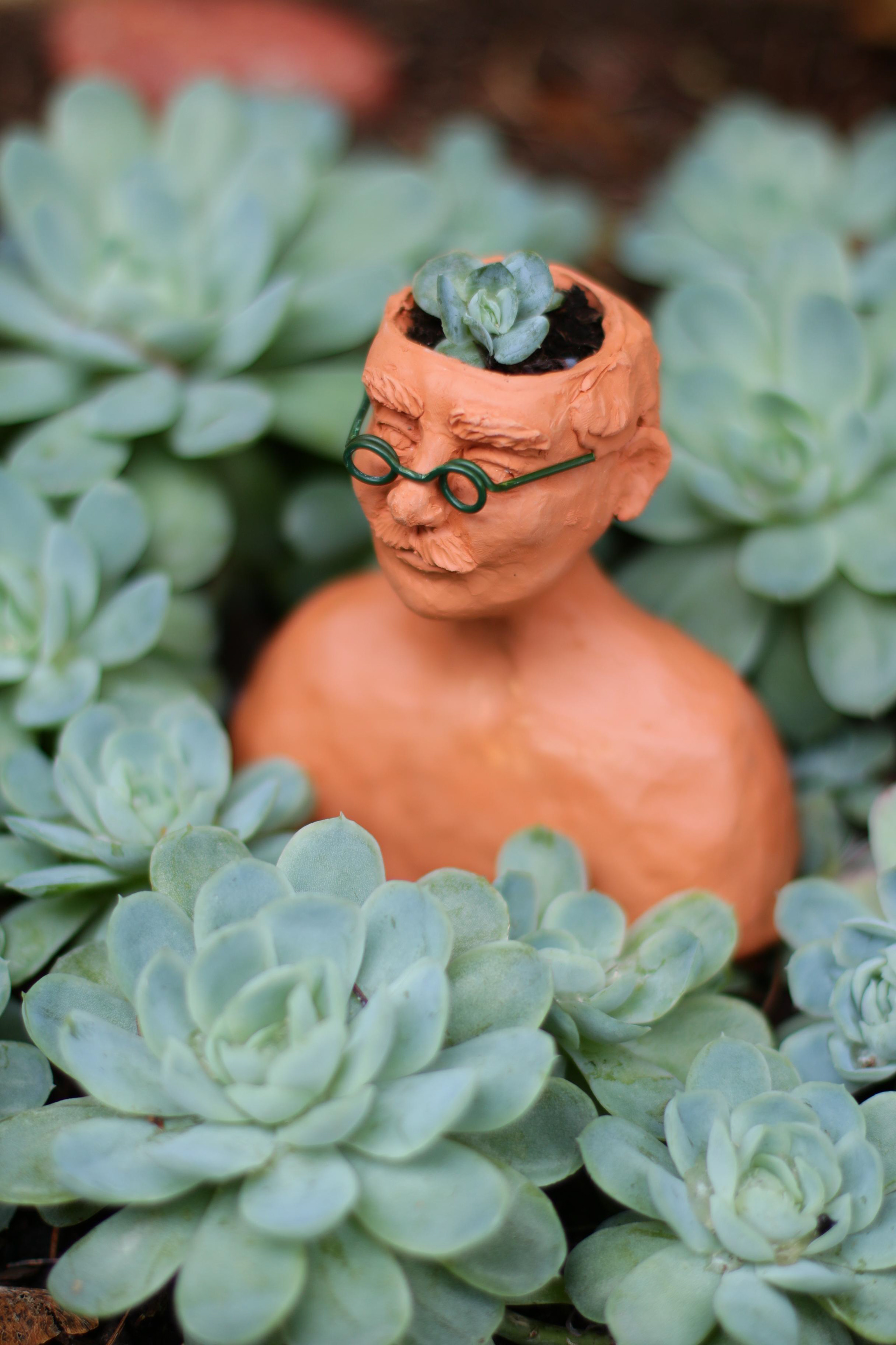 Sukkulenten-Kopf aus braunem Steinzeugton, 25 cm hoch
