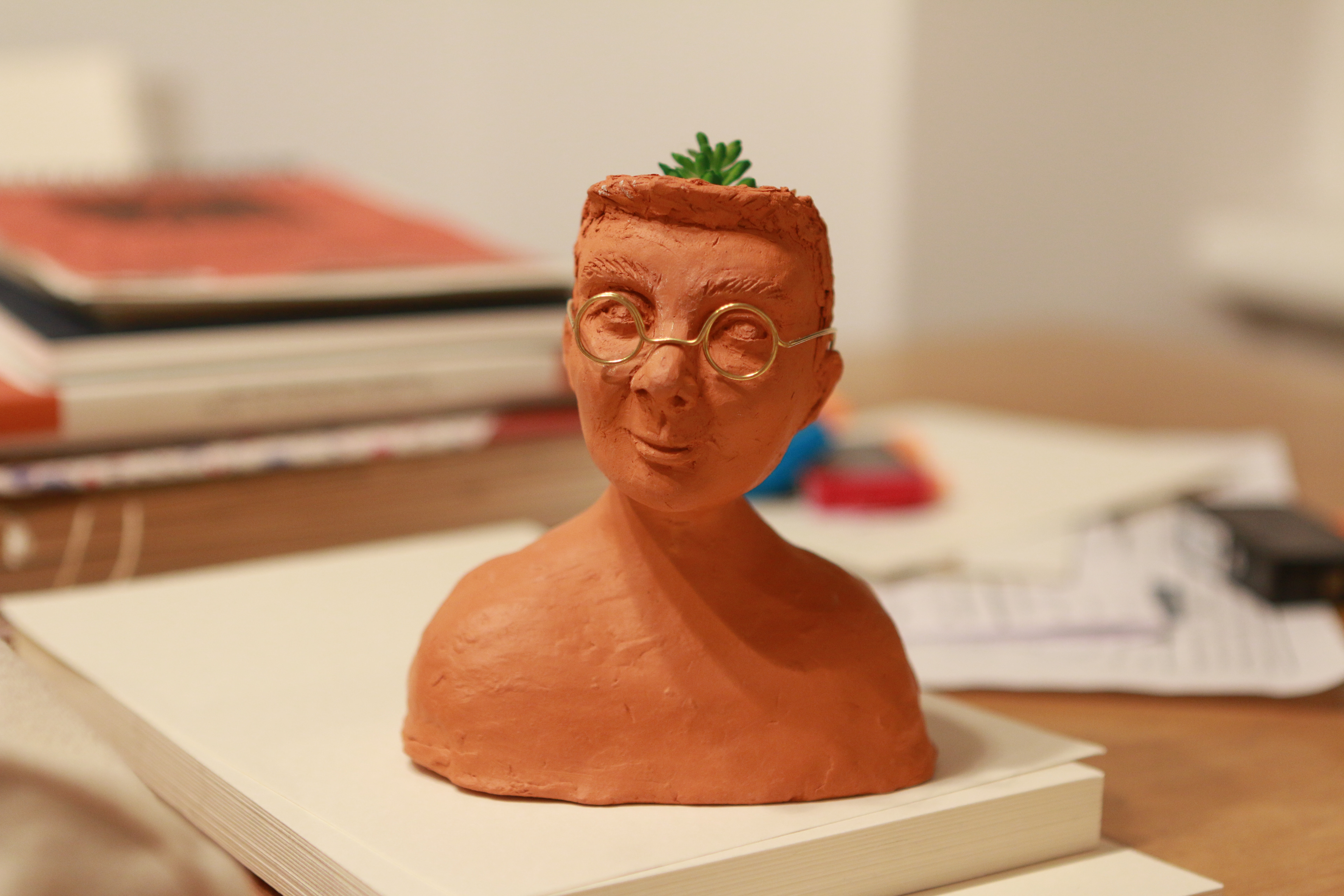 Personalisierte Skulptur, anhand von Fotos "nachgebaut". Oliver freute sich sehr über sein "Abbild". Danach lernte ich ihn erst von Angesicht zu Angesicht kennen - davor hatte ich ihn noch nie gesehen (nur jeden Zentimeter seiner Portraits "studiert").
