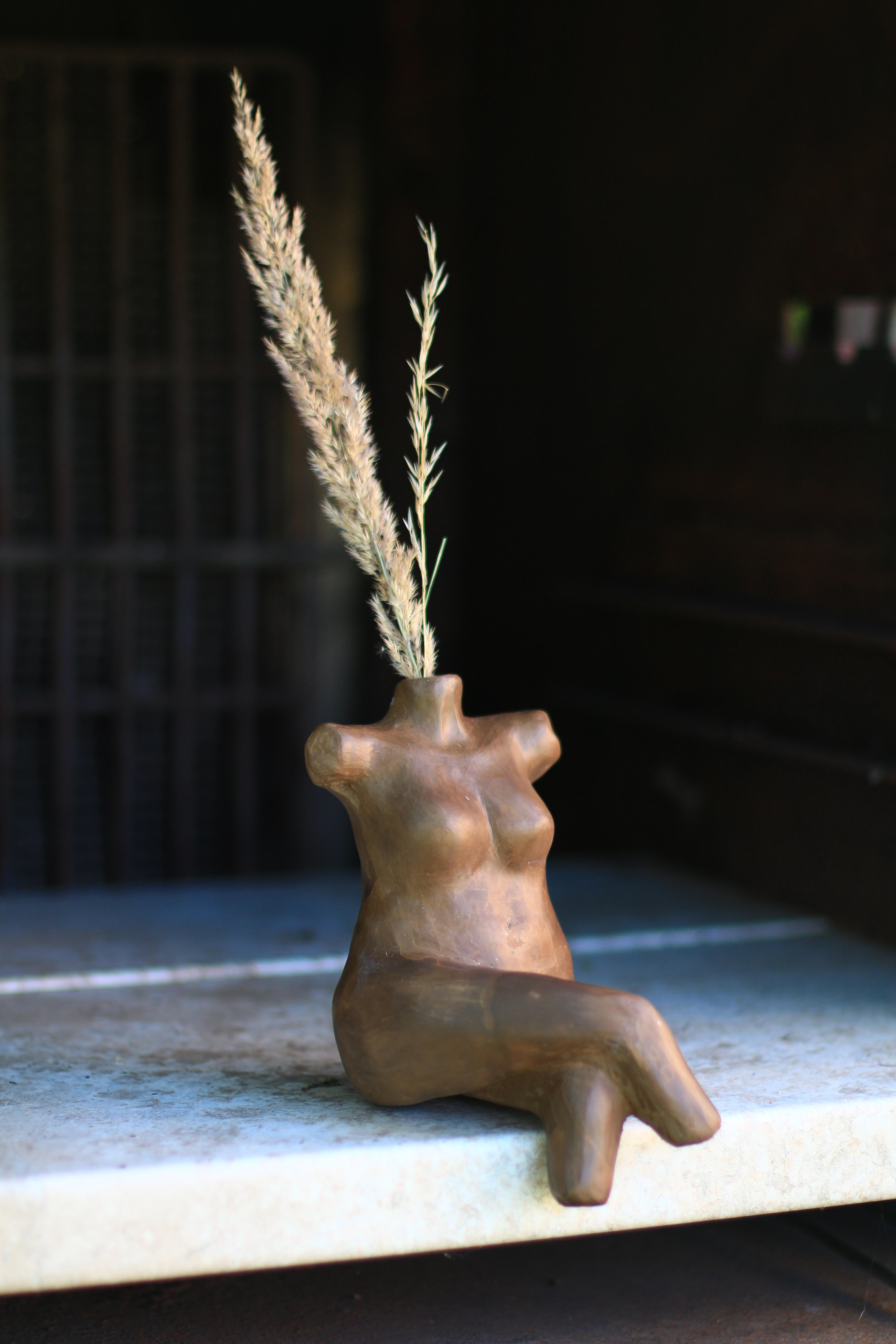 Vase aus braunem Steinzeugton
